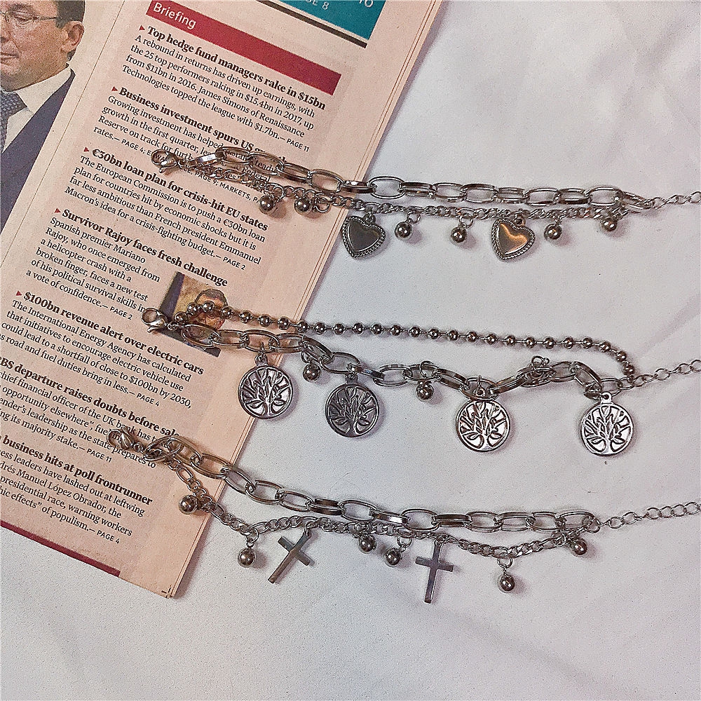 [Giao Hàng Miễn Phí] Vòng Đeo Tay Hai Lớp Phong Cách Hip Hop Hình Cây Chữ Thập Tình Yêu Cho Nam Nữ 22041 free ship